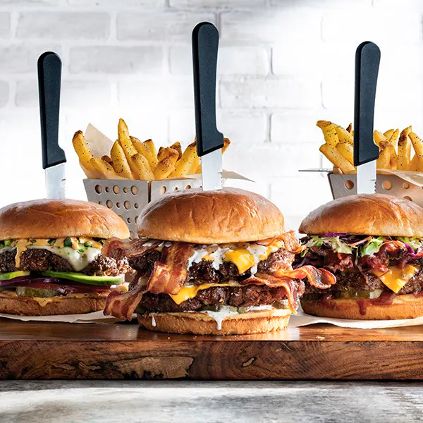 4 mini burgers with bacon, American cheese, sauteed onions, house-made ranch. 11.39