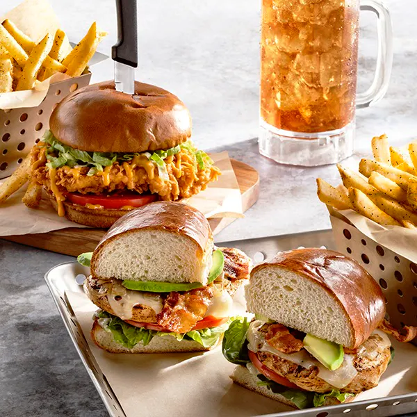 Hand-breaded crispy chicken, lettuce, tomato and our secret sauce on a brioche bun. Curious about our secret sauce? Get it on the side. You’re going to want to put it on everything. 10.49